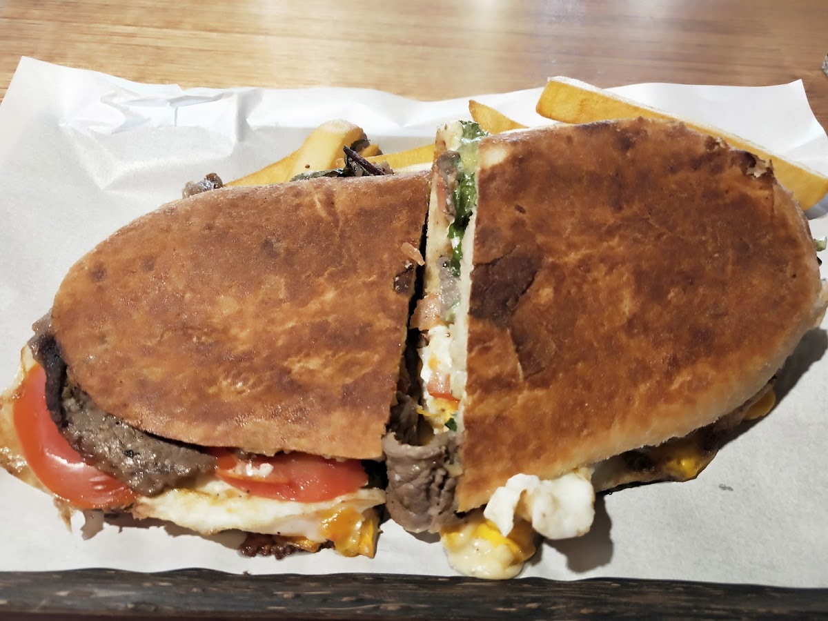 One of the standout dishes on the menu is the Argentinian Steak Sandwich. This hearty sandwich features tender, flavorful steak, cooked to perfection and complemented by fresh, crispy vegetables and a tangy sauce, all served in a perfectly soft roll. It's a must-try for anyone craving a satisfying and filling meal. If you're in the mood for something lighter, the Halloumi Salad with Egg offers a delicious, fresh option. With its crispy halloumi, perfectly cooked egg, and vibrant vegetables, this dish is both nutritious and bursting with flavor.